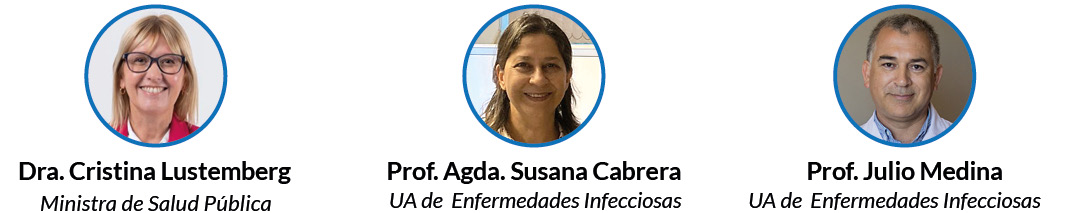 Panelistas: participan el Dr. José Vidal (BRA), Dr. Omar Sued (ARG), Prof. Dra. Raquel Ballesté (Unidad Académica – UA – de Laboratorio Clínico del Hospital de Clínicas), Dra. Mariela Contrera (CHLA-EP), Dra. Zaida Arteta, Lic. Enf. María Ithurralde (Red de Atención Primaria de ASSE) y Dr. Gabriel González (Gerencia General de ASSE).